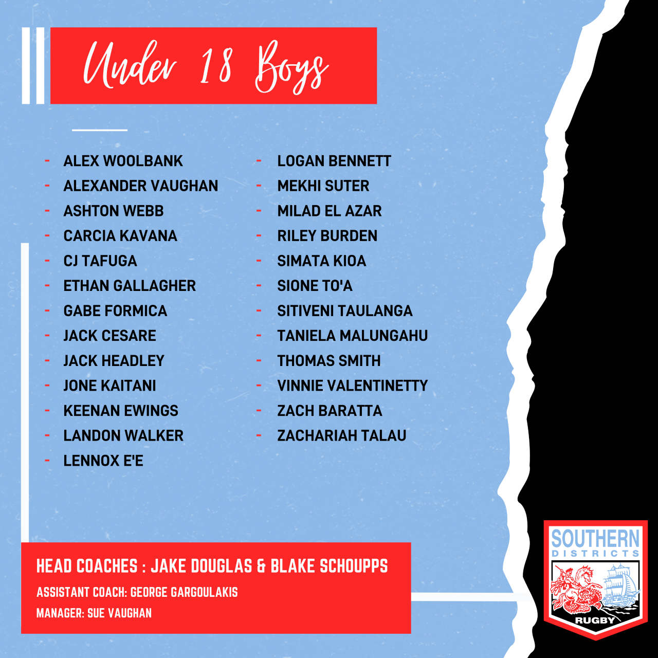Southern Districts Juniors Representative Team 2022